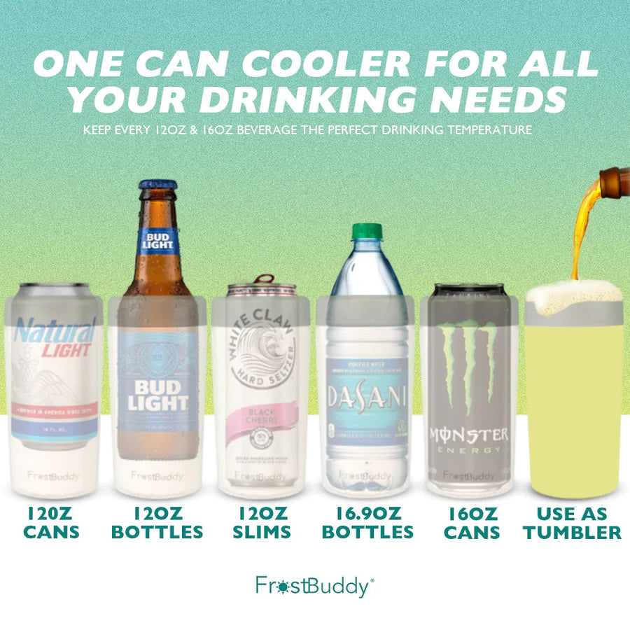 The hottest can cooler made better!! For all of your favorite 12OZ CANS, SLIM CANS, BOTTLES, AND 16OZ CANS & BOTTLES! You truly never have to switch can coolers. Bring your Universal Buddy anywhere and you’ll have every drink covered and cold til the last drop! Whether you’re camping, grilling out, on the beach, or relaxing for the night, it’s better with a buddy!